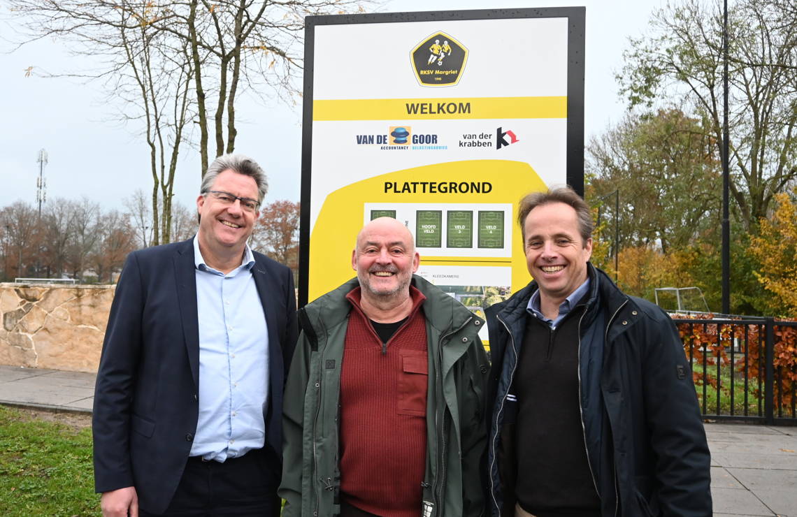 “Ik ben een echte Margriet man en ook Joris is in deze buurt opgegroeid en met name door zijn kinderen veel op de club gekomen”, aldus Mark, mede-eigenaar van Van de Goor Accountancy en Belastingadvies. “We zijn hier opgegroeid en met onze bedrijven al jaren aan Margriet verbonden. Tot aan de zomer was dat altijd in ‘kleinere’ sponsorovereenkomsten, bijvoorbeeld door enkele jeugdelftallen te voorzien van tenues, tassen en trainingspakken. Maar nu kwam ineens het hoofdsponsorschap vrij. En dus dachten we: wat nou als we daar sámen invulling aan geven?”