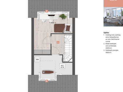 Ook op de tweede verdieping zijn er volop mogelijkheden. Met een dakkapel en/of dakramen creëer je een lichte, ruime (slaap)kamer of een fijne speelruimte. Liever een praktische indeling? Richt een aparte wasruimte in door een scheidingswand te plaatsen.