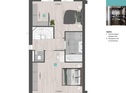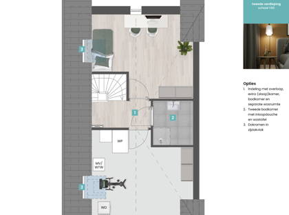 Ook de verdiepingen zijn naar wens in te delen. Op de eerste verdieping kun je de badkamer vergroten voor meer comfort, of twee slaapkamers samenvoegen tot één royale hoofdslaapkamer met bijv. een inloopkast. Op de tweede verdieping richt je met diverse indelingsopties een volwaardige woonlaag in, met bijvoorbeeld twee extra slaapkamers, een tweede badkamer en een praktische was-/bergruimte.