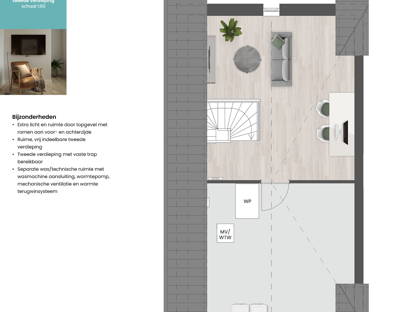 Bovendien is de woning zeer energiezuinig. Dat is goed voor het milieu én voor je maandlasten. Heb je behoefte aan extra ruimte voor je gezin, hobby of een thuiswerkplek? Ontdek dan de verschillende uitbreidings- en indelingsopties en maak van deze woning jouw ideale thuis.