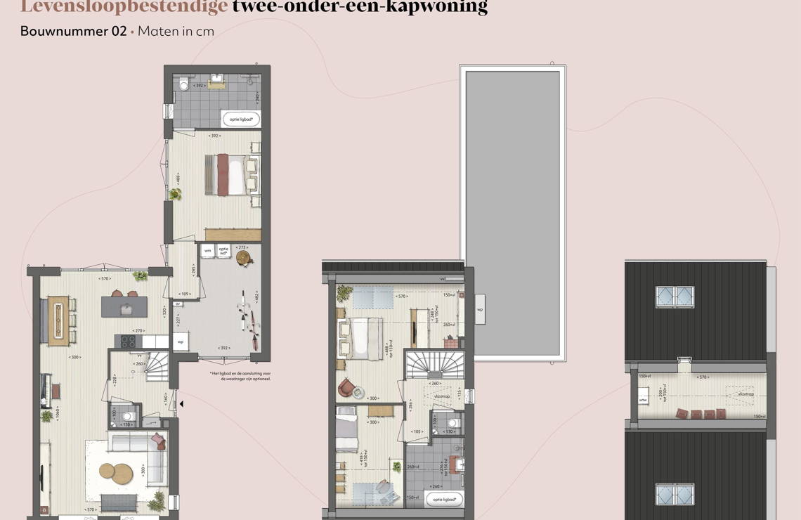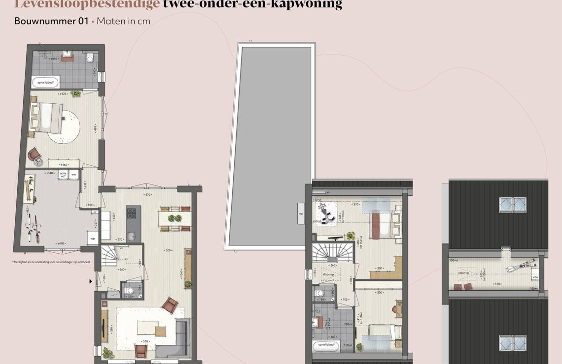 De twee-onder-een-kapwoningen hebben een compleet woonprogramma op de begane grond en zijn daardoor levensloopbestendig en uitermate geschikt voor senioren. Met een indeling met slaapkamers en een badkamer op de verdieping vormen deze woningen tegelijkertijd een perfect thuis voor gezinnen. Ook de benedenwoningen zijn levensloopbestendig dankzij het gelijkvloerse karakter. De bovenwoningen zijn verdeeld over de drie bovenste woonlagen. Met twee fijne slaapkamers ideaal voor een- of tweepersoonshuishoudens.