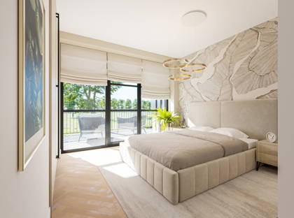 Ook de slaapkamer is ruim en licht opgezet en beschikt over een royale garderobe, gevolgd door de badkamer-en-suite met inloopdouche, extra toilet en eigentijds sanitair. Deze logische en comfortabele routing geeft een heerlijke, luxe hotelsfeer.