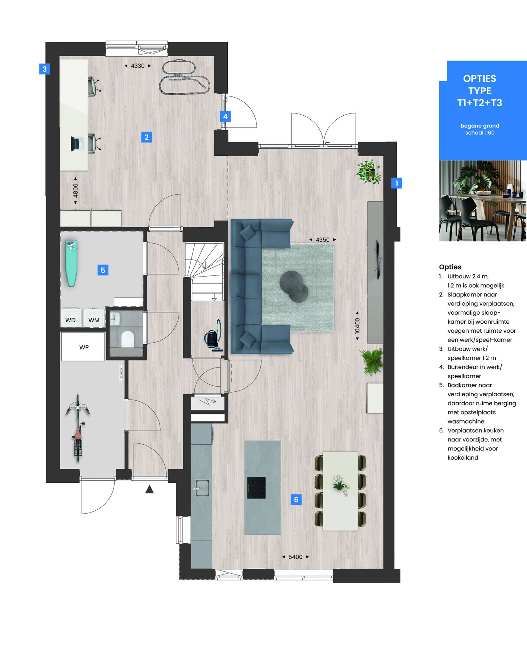 Flexibele opzet; in deze woning kun je levensloopbestendig wonen of werken aan huis in combinatie met het gezinsleven.