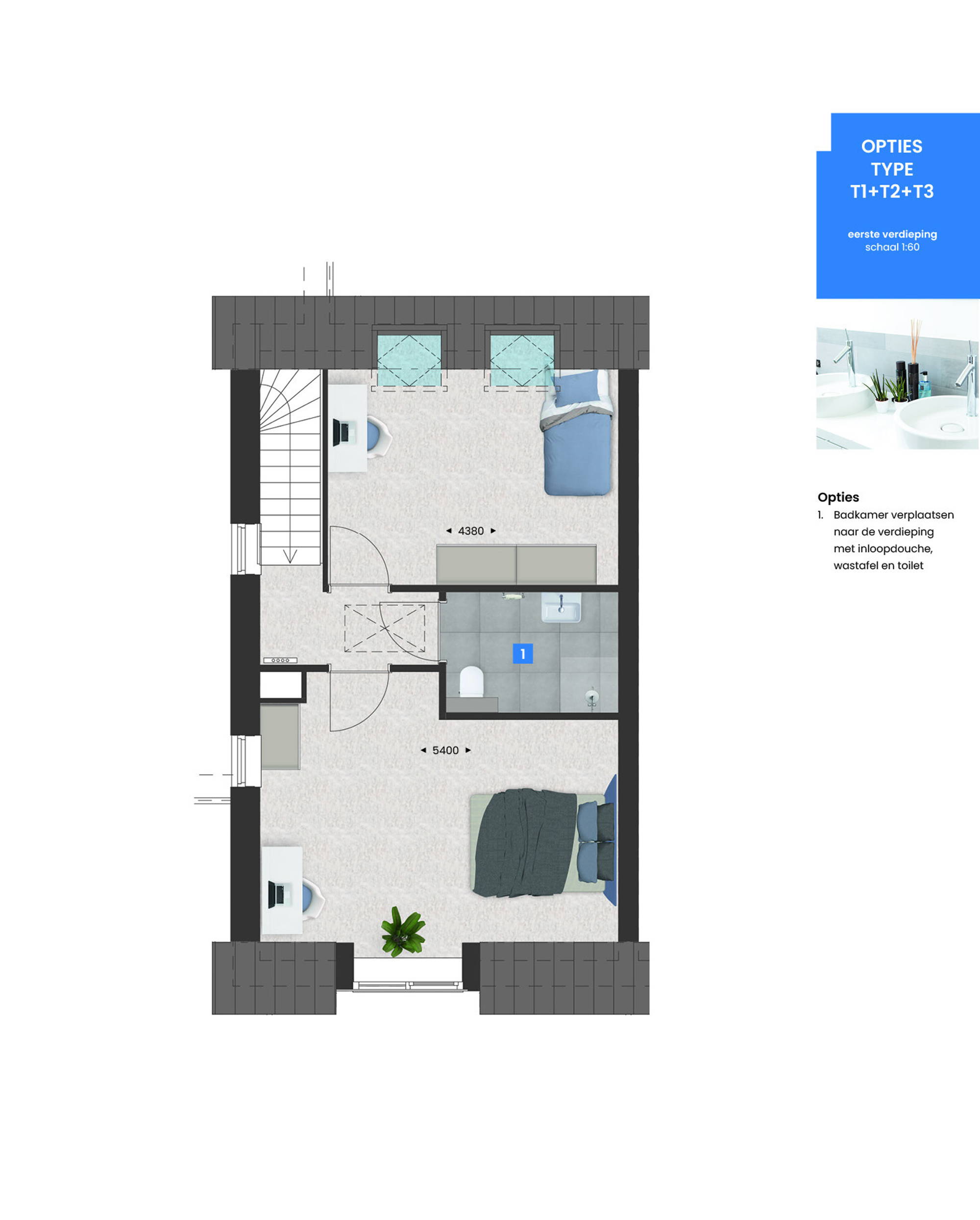 Met de diverse opties die we aanbieden kun je deze woning helemaal naar wens aanpassen. Zo kun je bijvoorbeeld de keuken naar de voorzijde verplaatsen en de woon- en slaapkamer vergroten. Je creëert hiermee veel extra leefruimte op de begane grond. Op de verdieping kun je met de optie voor een dakkapel aan de achterzijde extra veel ruimte en lichtinval creëren. Daarnaast is het mogelijk om de bergruimte te vervangen door een tweede badkamer.