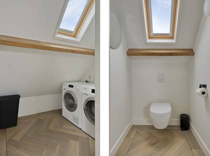 + De eerste verdieping bestaat uit de overloop met inbouwkasten, airconditioning en vlizotrap, drie volwaardige slaapkamers, een separate waskamer met de witgoedaansluitingen en een toiletruimte met wandtoilet.