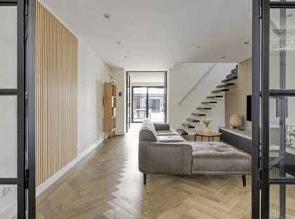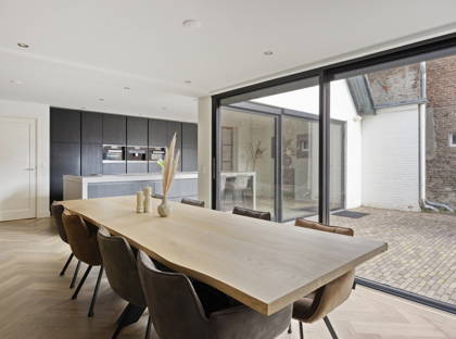 De woning is met veel gevoel voor stijl en kwaliteit gemoderniseerd. De pvc vloer, stalen taatsdeuren, strak stucwerk en spotverlichting geven de woonkamer een eigentijdse, warme uitstraling. De keuken is een droom voor kookliefhebbers, met hoogwaardige Miele-apparatuur, een Bora-kookplaat met geïntegreerde afzuiging en een Quooker. De schuifpuien zorgen voor een prachtige lichtinval en direct contact met de zonnige tuin op het zuiden. Ook aan extra comfort in de slaapkamers is gedacht: airconditioning, elektrische screens en internetaansluitingen maken het woonplezier compleet.