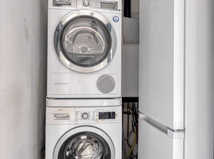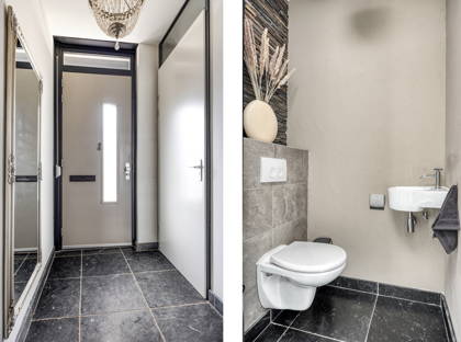 Aansluitend bevindt zich een aparte wasruimte met aansluiting voor wasapparatuur en de opstelling van de Intergas cv-ketel.