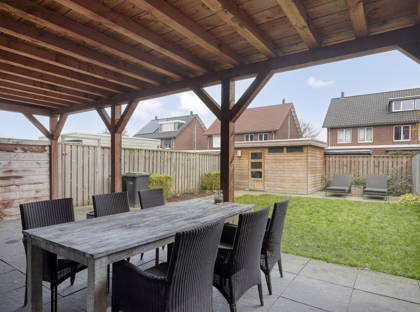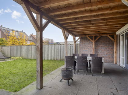 De woning is goed afgewerkt, ruim van opzet en biedt volop wooncomfort. Binnen valt direct de prettige lichtinval en de royale leefruimtes op. De begane grond is voorzien van een moderne tegelvloer met vloerverwarming, strak stucwerk en rolluiken. Daarnaast beschikt de woning over 15 zonnepanelen, wat bijdraagt aan een lagere energielast en een duurzaam wooncomfort. De tuingerichte woonkamer sluit mooi aan op de diepe achtertuin, waar een fraaie houten overkapping is geplaatst; een heerlijke plek om het hele jaar door van het buitenleven te genieten.