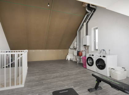 De tweede verdieping is bereikbaar via een vaste trap en beschikt over een betonnen vloer en een royale dakkapel, wat zorgt voor veel licht en extra ruimte. Deze verdieping leent zich uitstekend voor het realiseren van één of meerdere extra slaapkamers, werkruimtes of hobbykamers