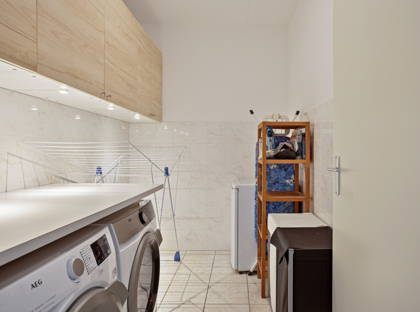 + De eerste verdieping bestaat uit de overloop met airconditioning (2023), drie slaapkamers, een waskamer met de witgoedaansluitingen en een separate bergruimte met de Intergas HR-ketel (2024).