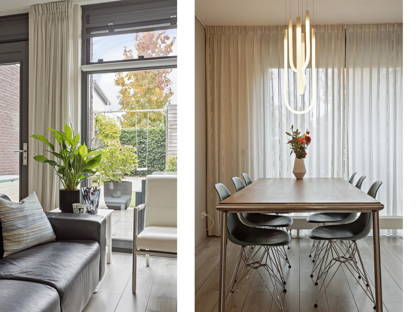 + De woning heeft hard houten kozijnen met HR++ glas, horren en elektrisch bedienbare rolluiken.
