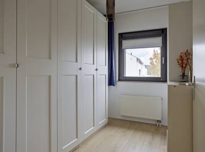 De ruime leefkeuken vormt het hart van het huis: een gezellige plek waar je met uitzicht naar buiten geniet van het dagelijkse leven. De keuken is luxe uitgevoerd met onder andere een inductiekookplaat met dubbele oven van Smeg, stoomoven en vaatwasser op hoogte. De woonkamer sluit hier naadloos op aan en biedt een sfeervolle leefruimte met veel lichtinval. De woning beschikt ten slotte over verrassend veel bergruimte vanwege de vaste kasten en bergingen.