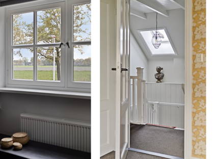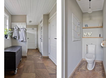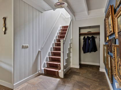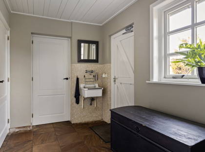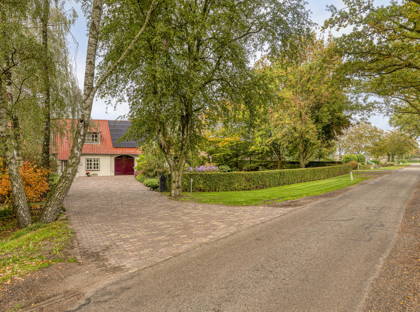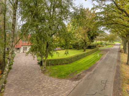 De lange oprijlaan, de grote groene voortuin, de volwassen bomen en het karakteristieke aanzicht van de boerderij: dit is landelijk wonen op zijn best! Via de originele boerderijdeur stap je de woning binnen, in de ruime hal. Hier starten we de rondleiding door dit huis. De trap met fraai tapijt is hier al direct een blikvanger. Vanuit de hal heb je toegang tot de woonkamer en de leefkeuken.