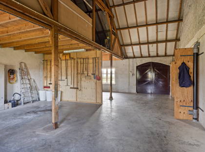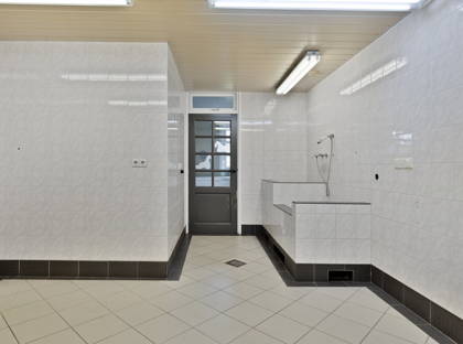 Aan de andere zijde van de woning zijn nog een bijkeuken en twee aparte ruimtes. Deze zijn door de huidige bewoners gebruikt als trimsalon en winkel en kunnen uiteraard naar eigen wens worden ingericht. Ook is er een grote inpandige garage die eindeloos veel mogelijkheden biedt. Denk aan een hobbyruimte, een mantelzorgwoning of een uitbreiding van het woonhuis.
