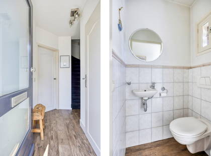 Aan de voortuin zie je direct dat dit huis goed onderhouden is; wat een warm welkom! Op de oprit is ruimte voor meerdere auto’s, waarvan je er een onder de carport kwijt kunt. Bij binnenkomst in de hal valt direct de rustieke houtlook PVC-vloer op, die de hele benedenverdieping veel sfeer geeft. Onder deze vloer ligt vloerverwarming, voor extra comfort in de koude wintermaanden.