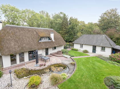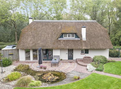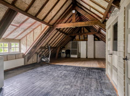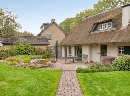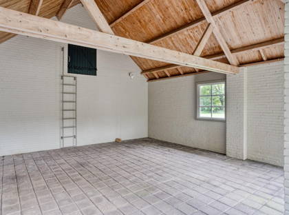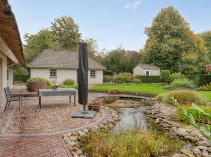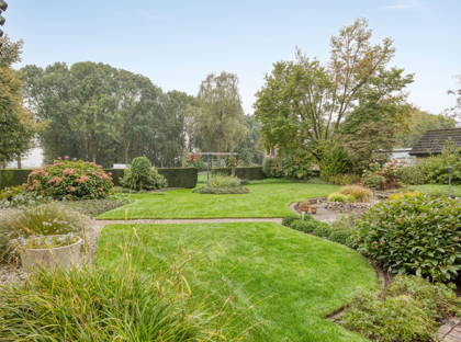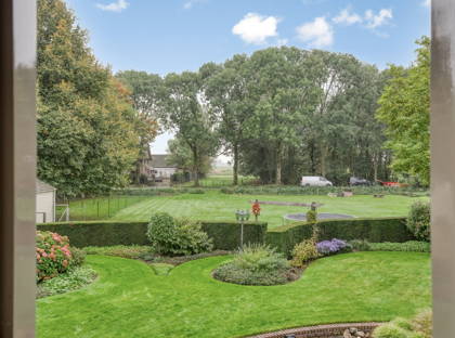 Dat aangename woongevoel begint als op het ruime erf met de immense achtertuin. Die tuin is een waar pronkstuk, ontworpen met gevoel voor sfeer en variatie. De glooiende gazons, kleurrijke borders, oude bomen, hagen en terrassen wisselen elkaar fraai af. Een sierlijke vijver, een authentieke waterput en het weidse uitzicht versterken het landelijke karakter. Daarnaast biedt de oprit plaats aan meerdere auto’s. Vervolgens leidt het tuinpad naar een groot vrijstaand bijgebouw met dubbele carport, bergzolder en aparte berging.