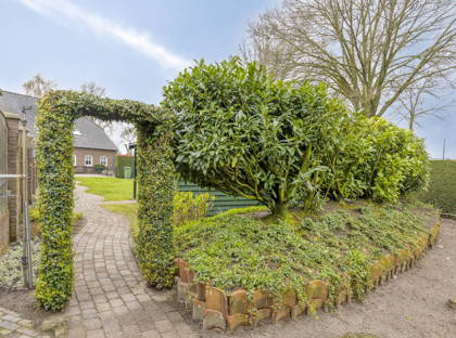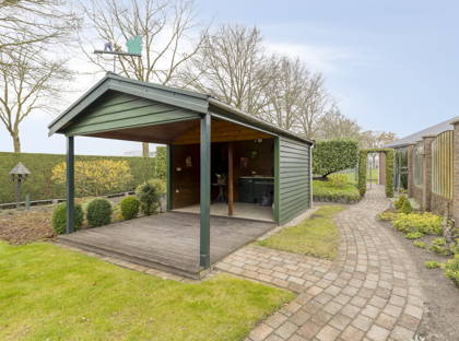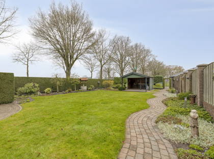 De buitenruimte is absoluut het hoogtepunt van deze woonboerderij. Met meer dan 3700 m2 heb je hier alle ruimte om je tuindromen waar te maken. De tuin rondom en achter de woning is prachtig aangelegd met een terras, grote graspartij, borders met beplanting en een speels pad dat naar de overkapping leidt. Bij het huis hoort ook een royaal weiland, dat zeer geschikt is om dieren aan huis te houden. Als laatste staat er een fijne en zeer ruime garage op het perceel, die veel mogelijkheden biedt voor hobby’s, klussen en het opbergen van spullen.