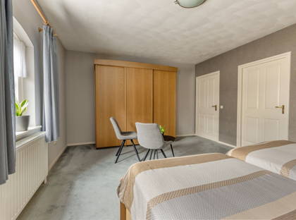 - Vier slaapkamers en mogelijkheid tot het aanleggen van een badkamer op de eerste verdieping