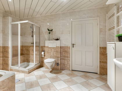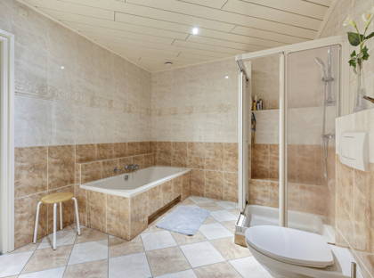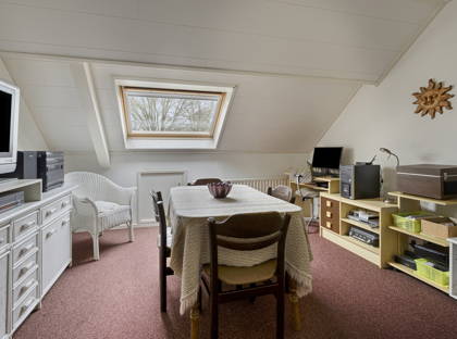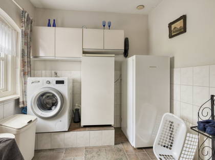 Op de begane grond is nog een zeer ruime slaapkamer en een royale badkamer met wastafel, douche, toilet en ligbad. De woning is dus al levensloopbestendig. Deze ruimtes bieden ook volop mogelijkheden om een werkruimte of praktijk aan huis te creëren. Ten slotte is er nog een apart toilet en praktische bijkeuken met witgoedaansluitingen op deze verdieping.