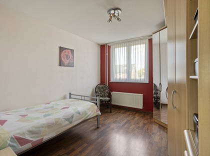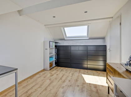 + De vierde, volwaardige slaapkamer is licht, voorzien van een laminaatvloer en beschikt over een dakkapel en een dakraam (2022).