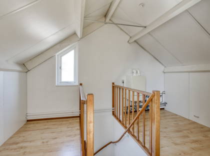 + De tweede verdieping is met een vaste trap bereikbaar en is verdeeld in een voorzolder met de Remeha combiketel (2011), wastafel en opbergruimte achter knieschotten en de vierde slaapkamer.