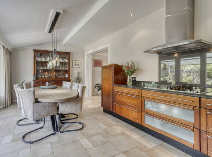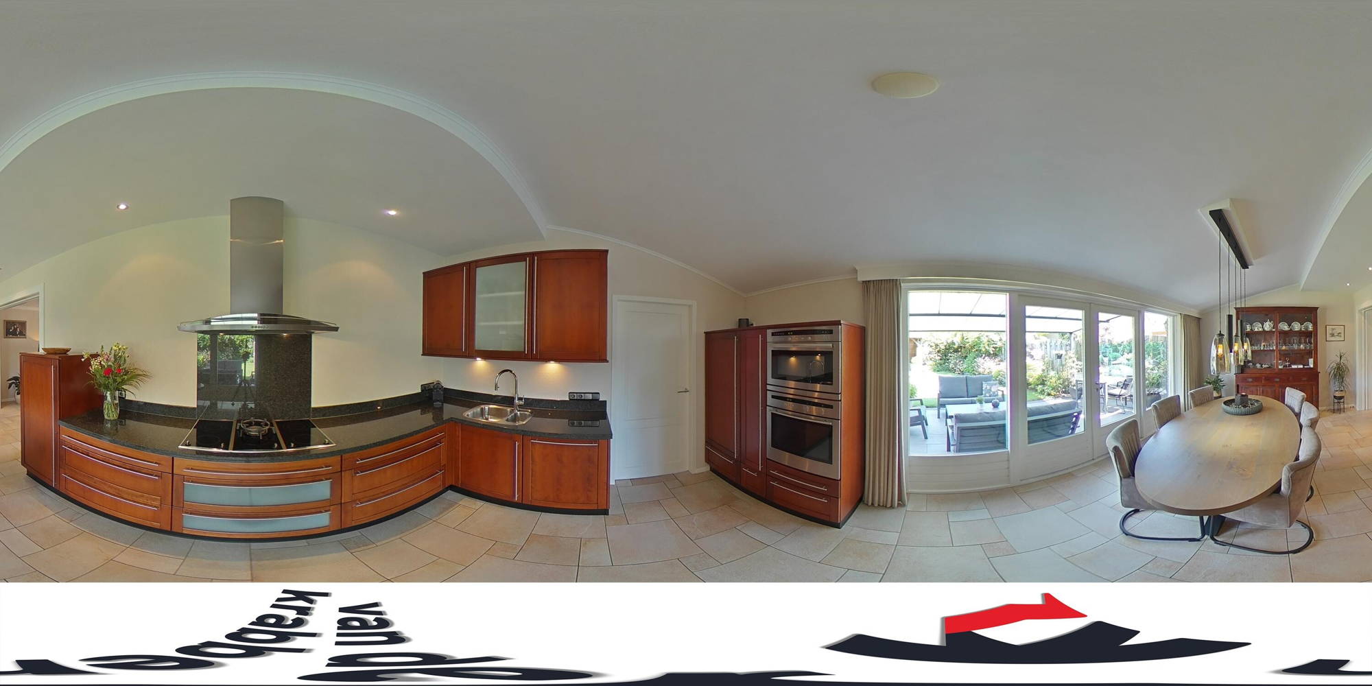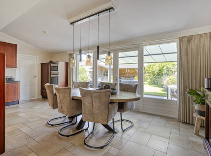 + De uitgebouwde woonkeuken is zeer ruim en luxe uitgevoerd met een granieten werkblad, 5-pits keramische kookplaat met wokbrander, afzuigkap, oven, combi-oven, koelkast, vaatwasser en een Quooker kokendwaterkraan. De tuingerichte keuken heeft daarnaast openslaande deuren naar de achtertuin.