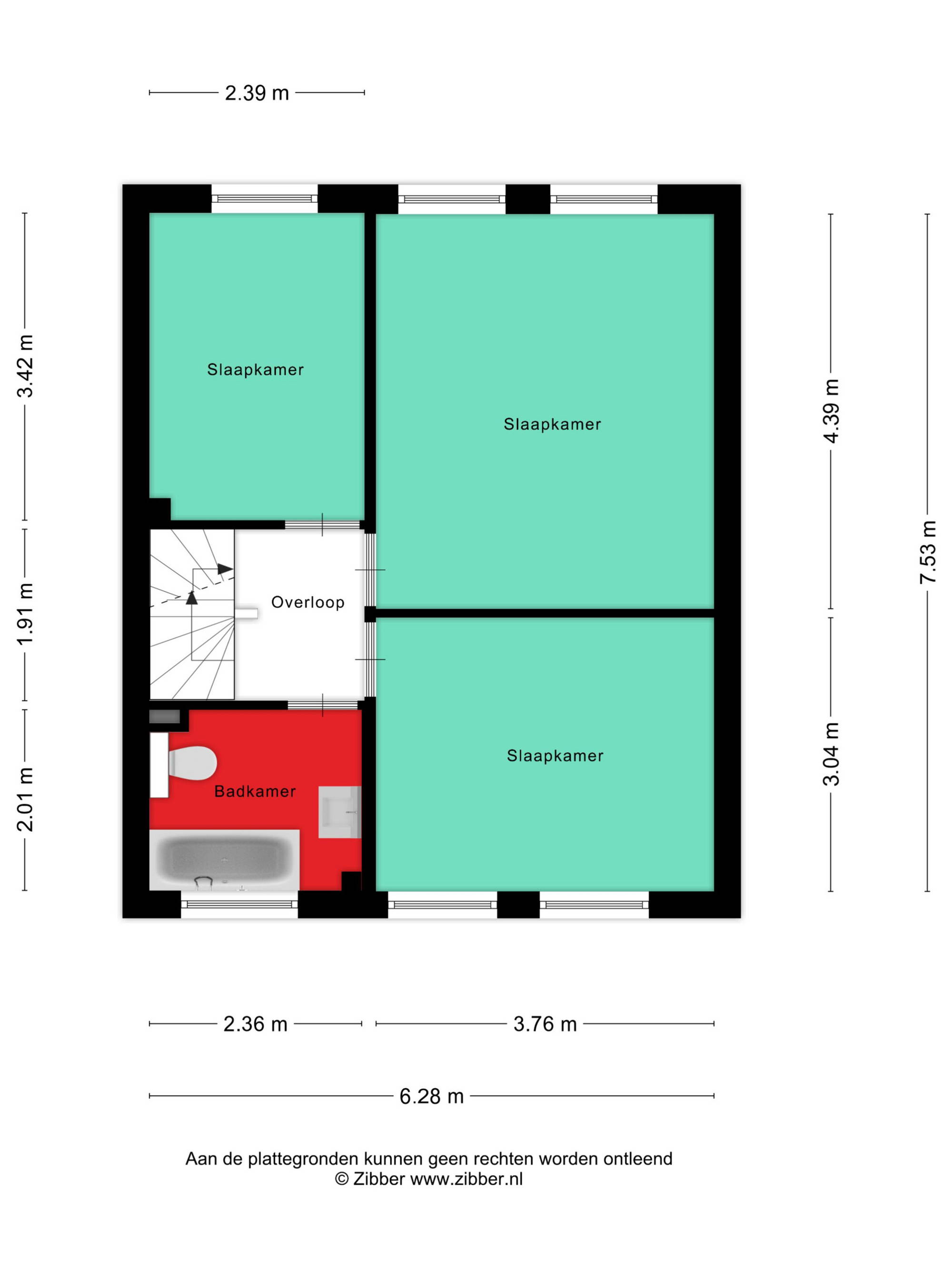 Op de eerste verdieping bevinden zich drie slaapkamers, allen voorzien van laminaatvloeren en behangafwerking. De badkamer is uitgevoerd met een toilet, bad/douchecombinatie, wastafel en een raam voor natuurlijke ventilatie en daglicht.