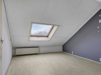 De tweede verdieping bestaat uit een voorzolder met opstelplaats voor het witgoed en de cv-ketel (Remeha, 2018), aangevuld met bergruimte. Daarnaast is hier een vierde slaapkamer gerealiseerd met dakraam, laminaatvloer en extra bergruimte achter de knieschotten.