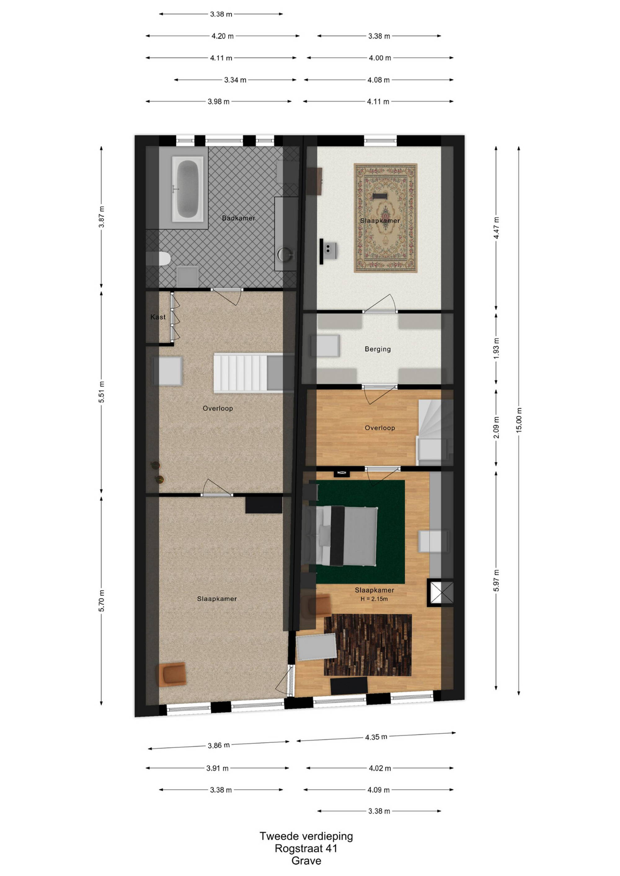 + De tweede verdieping bestaat uit een ruime overloop met inbouwkast, drie slaapkamers, een berging en de tweede badkamer. De slaapkamers zijn ruim en multifunctioneel in te richten, zoals als logeerkamer, kinderkamer of thuiskantoor. Dit biedt veel flexibiliteit voor verschillende woonwensen.