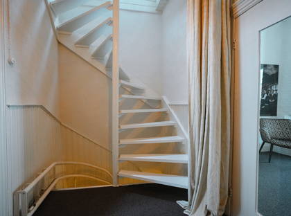 + Via de entree heb je toegang tot de vaste trap die de bovenwoning verbindt met de ondergelegen winkelruimte. De trap is voorzien van een handige traplift, waardoor deze woning ook toegankelijk is voor mindervaliden.