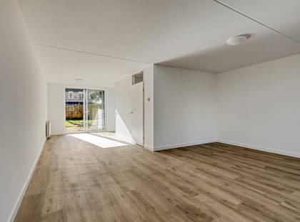 De woning beschikt over een eigen oprit en een verzorgde uitstraling. Binnen valt direct de nette afwerking op: door de hele woning ligt een moderne laminaatvloer, wat zorgt voor een rustige en uniforme uitstraling. De woonkamer is licht en ruim en staat in directe verbinding met de achtertuin via een schuifpui en een aparte achterdeur. De tuin is gelegen op het zuidoosten, waardoor je hier al vroeg op de dag van de zon kunt genieten. Bij zonnige dagen zorgt het handmatige zonnescherm bij de schuifpui voor extra comfort.