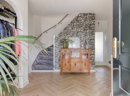 + Visgraatvloer met vloerverwarming in de hal gaat verder in de woonkamer. leefkeuken en bijkeuken.