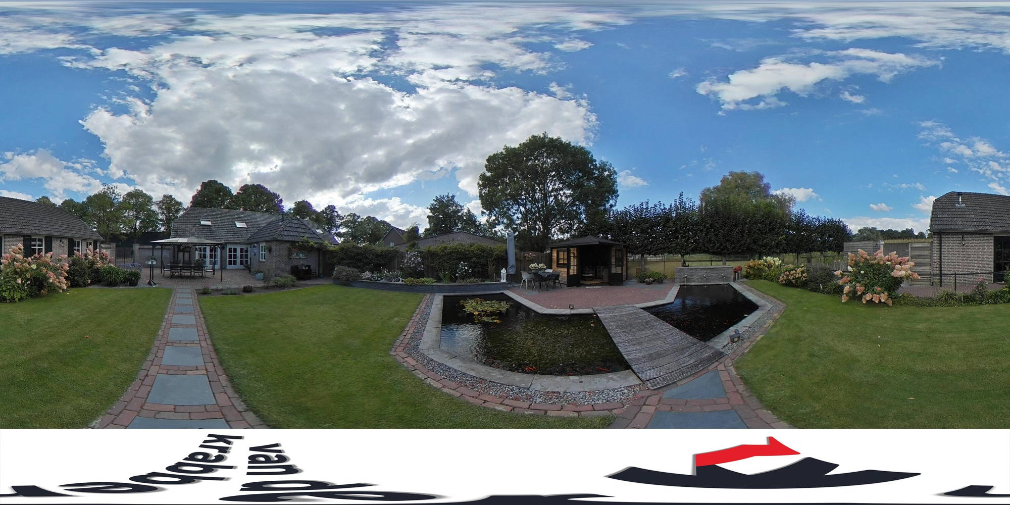 + De achtertuin met aansluitend weiland biedt veel rust en privacy. De tuin is prachtig vormgegeven met gazon, een vijverbassin, verharde terrassen, fraai beplante borders en leibomen aan de achterkant. In een hoek van de tuin bevindt zich een sfeervol houten tuinhuis met openslaande deuren naar een verhard terras. Dit terras sluit aan op een stijlvol vijverbassin met vlonderbrug.