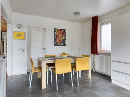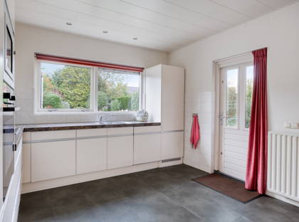 Binnen in de woning valt direct de lichte en huiselijke sfeer op. Zo komt het daglicht van meerdere kanten de woonkamer binnen, onder andere via de fraaie hoek-erker. De parketvloer en de houtkachel voegen hier warmte en sfeer aan toe. Vervolgens maakt de royale en tuingerichte leefkeuken het comfortabele woongedeelte compleet.