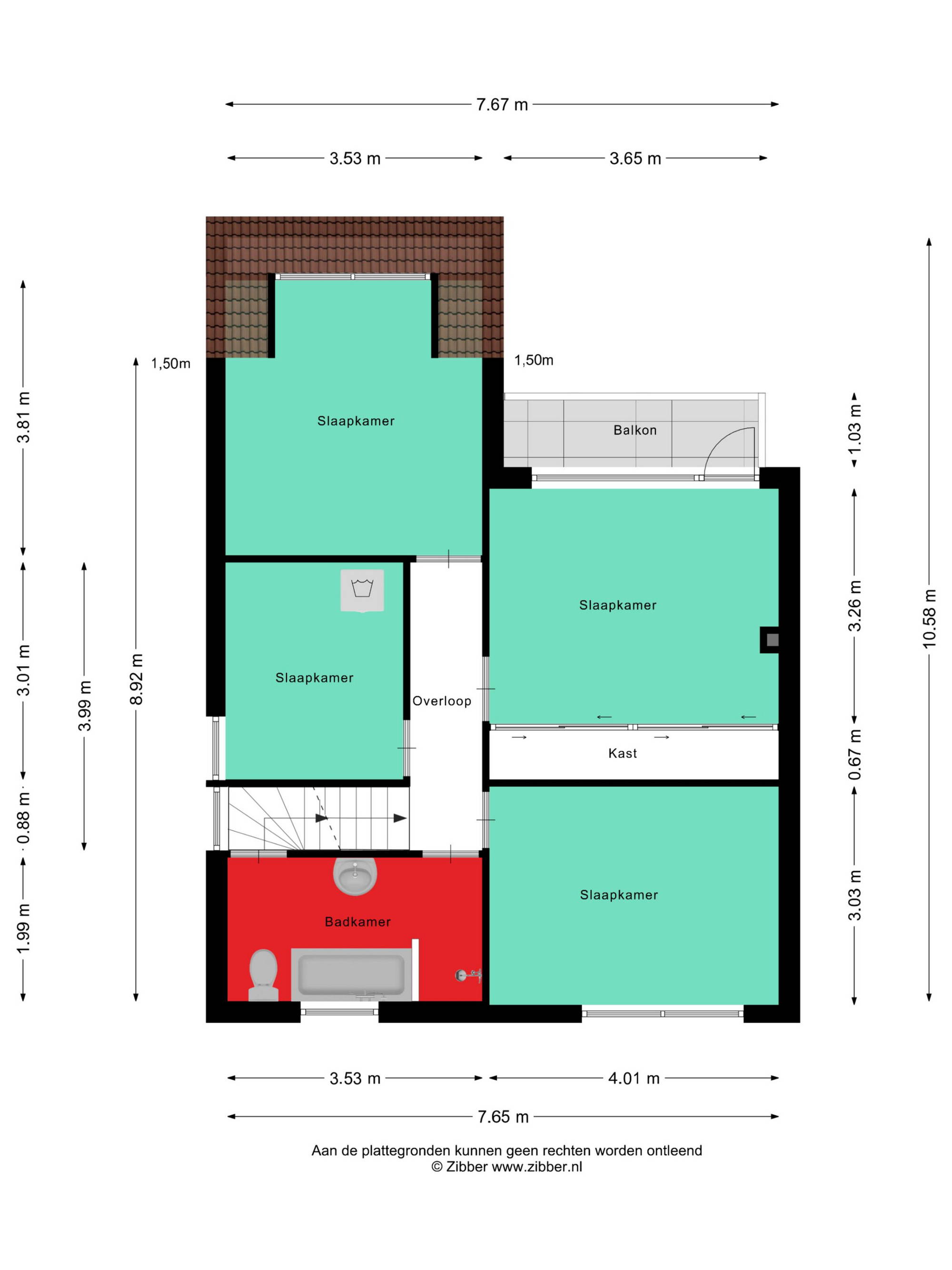 + Glaswol-isolatie slaapkamer bovenverdieping.