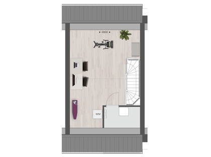 Met een vaste trap bereik je de multifunctionele zolder. Hier bevindt zich de technische ruimte en de opstelplaats voor de wasmachine en eventueel wasdroger.