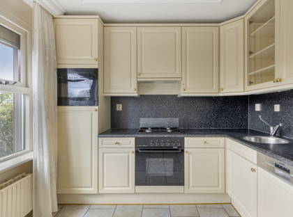 De keuken bevindt zich aan de voorzijde en is compleet uitgerust met een koelkast, oven, 4-pits fornuis, afzuigkap, vaatwasser en magnetron. Zowel aan de voor- als achterzijde zijn rolluiken aanwezig.