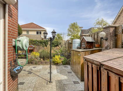 De tuin beschikt bovendien over een handige achterom, wat zorgt voor extra toegankelijkheid en gemak.