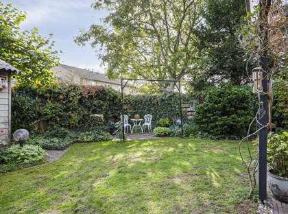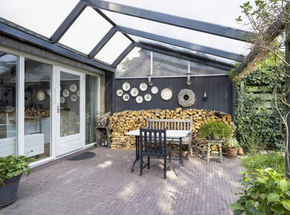 + De achtertuin ligt op het zuiden en is fraai aangelegd. Er is een comfortabele overkapping waar je beschut kunt zitten, een zonneluifel voor de warme dagen, een wateraansluiting, elektra en een praktische berging. Een heerlijke plek om te genieten van rust en zon!