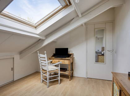 + De tweede verdieping is ook met een vaste trap bereikbaar. Hier bevinden zich nog twee slaapkamers, waarvan één met een dakkapel met rolluiken en de ander met groot dakraam en wastafel. Daarnaast is er volop bergruimte aanwezig en bevindt zich hier de cv-installatie.