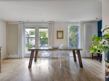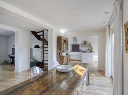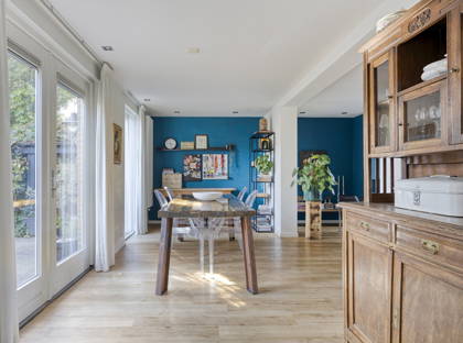 + De tuingerichte eethoek heeft openslaande deuren naar de zonnige tuin. Doordat deze ruimte in open verbinding staat met zowel de woonkamer als de keuken voelt de begane grond extra ruimtelijk aan.