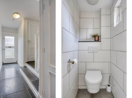 + Vanuit de entree heb je toegang tot de moderne toiletruimte met wandtoilet en de ruime kelder.