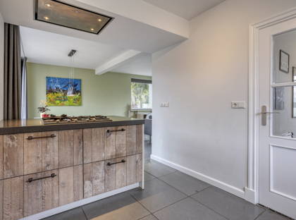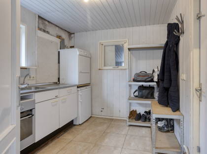 + De praktische bijkeuken met keukenblok biedt plaats voor de witgoedaansluitingen en extra bergruimte.