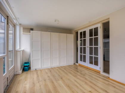 Via een klein tussenhalletje, waar een extra keukenblokje aanwezig is, bereik je de multifunctionele aanbouw. Deze ruimte is volledig ingericht met eigen voorzieningen zoals een pantry en toilet en voelt dankzij de vele ramen en openslaande tuindeuren bijzonder licht en ruim. Hierdoor leent deze zich perfect voor uiteenlopende doeleinden, zoals een kantoor aan huis, praktijkruimte, atelier, salon, gastenverblijf of mantelzorgunit. In combinatie met de bovenliggende bergzolder biedt dit een unieke kans voor wie wonen en werken wil combineren of op zoek is naar extra zelfstandige leefruimte.