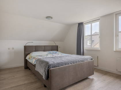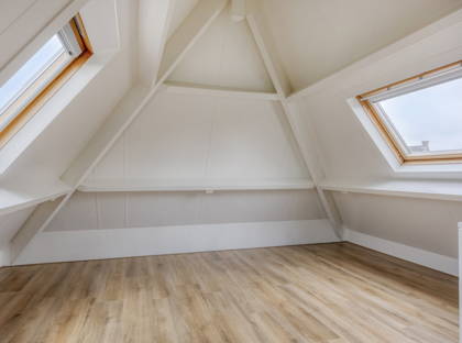 De eerste slaapkamer beschikt over twee grote dakramen en een prettige indeling, waardoor deze zowel als slaapkamer, werkruimte of hobbykamer gebruikt kan worden. De tweede slaapkamer is nog ruimer en heeft maar liefst drie ramen, wat zorgt voor een open en lichte sfeer. Beide kamers zijn voorzien van een laminaatvloer en voelen warm en comfortabel aan.