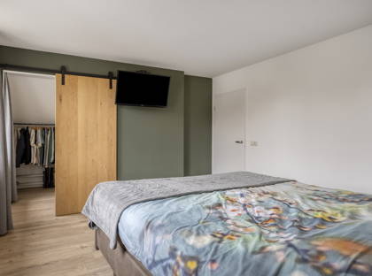 De eerste verdieping is stijlvol en strak afgewerkt met gladde stucwanden, stucplafonds en een doorlopende laminaatvloer. Hier bevinden zich drie ruime slaapkamers, die allemaal zijn voorzien van rolluiken uit 2022. De kamers voelen licht aan en zijn functioneel ingedeeld. Eén van de kamers beschikt bovendien over een fijne walk-in closet, ideaal voor extra opbergruimte en comfort.