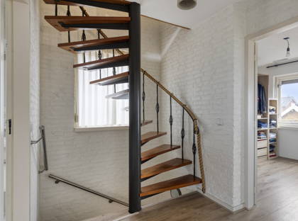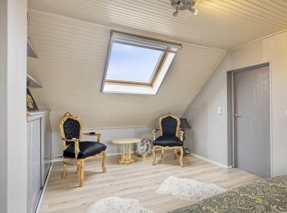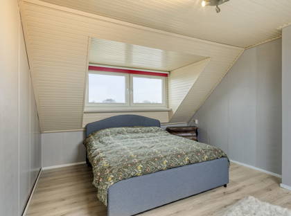 Via een vaste trap bereik je de tweede verdieping. Hier bevindt zich bergruimte met de opstelling van de installatie voor de hete-luchtverwarming en de screens. Daarnaast is hier de vierde slaapkamer gesitueerd, voorzien van een laminaatvloer en een kunststof dakkapel uit 2009, wat zorgt voor extra ruimte en een prettige lichtinval.