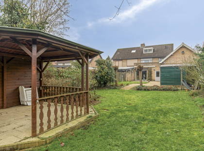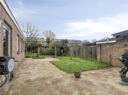 De achtertuin is royaal van opzet en biedt volop mogelijkheden om meerdere zitplekken te creëren. Door de diepte van de tuin zijn zon en schaduw gedurende de dag goed te combineren. Achter in de tuin bevindt zich een extra berging, ideaal voor het opbergen van tuingereedschap en fietsen.