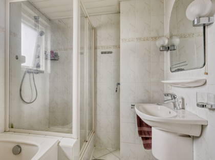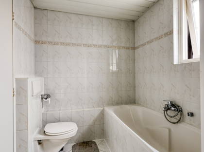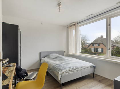 Op de eerste verdieping bevinden zich drie slaapkamers van goede afmetingen. De hoofdslaapkamer is afgewerkt met een laminaatvloer en voorzien van dubbel glas uit 2019. De overige twee slaapkamers bieden eveneens fijne leefruimtes en volop daglicht. De badkamer is compleet ingericht met een ligbad, douche, wastafel en toilet.