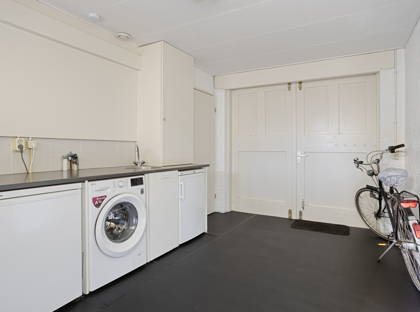 + De inpandige garage is bereikbaar vanuit de keuken en voorzien van openslaande garagedeuren, witgoedaansluitingen, Remeha cv-ketel (2013) en meterkast met glasvezelaansluiting